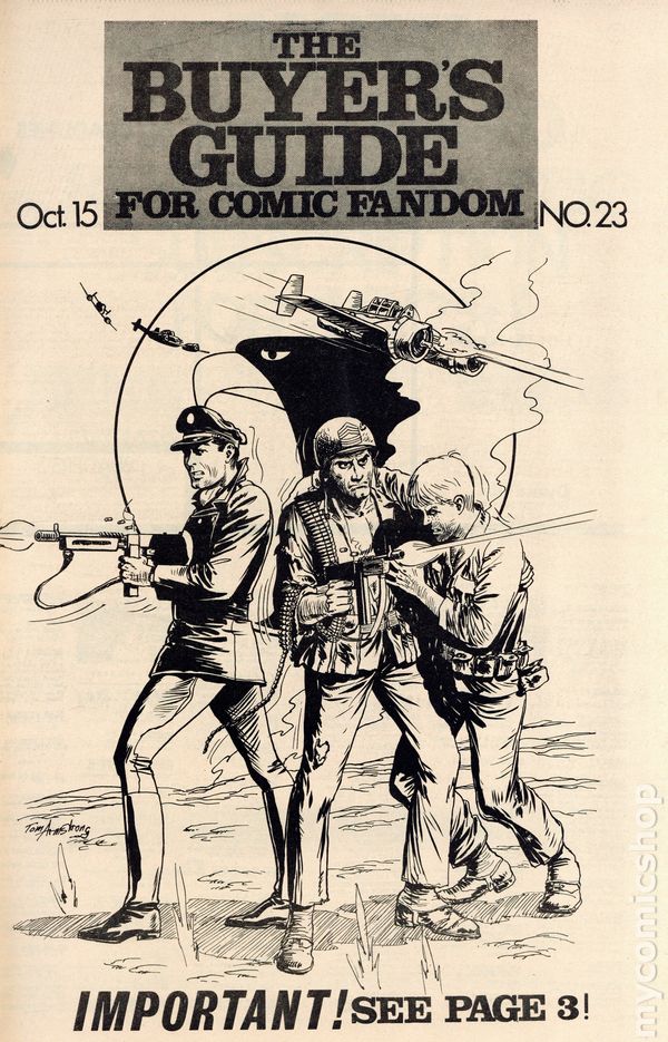 The Buyers Guide for Comic Fandom #23 - October 15, 1972. Cover artist Tom Armstrong. 36 pages in two sections, B&W on newsprint.