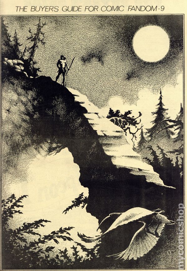 The Buyer's Guide for Comic Fandom #9 (November 1971) is an early-era comics ad zine featuring comic for sale lists and ads for the many fan publication of the period. This issue features a Stephen Fabian cover. 24 pages, black and white on newsprint, tabloid 11.5-in. x 17.5-in. NOTE: Early issues were mailed free to interested comic collectors; back issues could be ordered at 25c ea. Later the publication moved to paid subscriptions. Cover price $2.00.