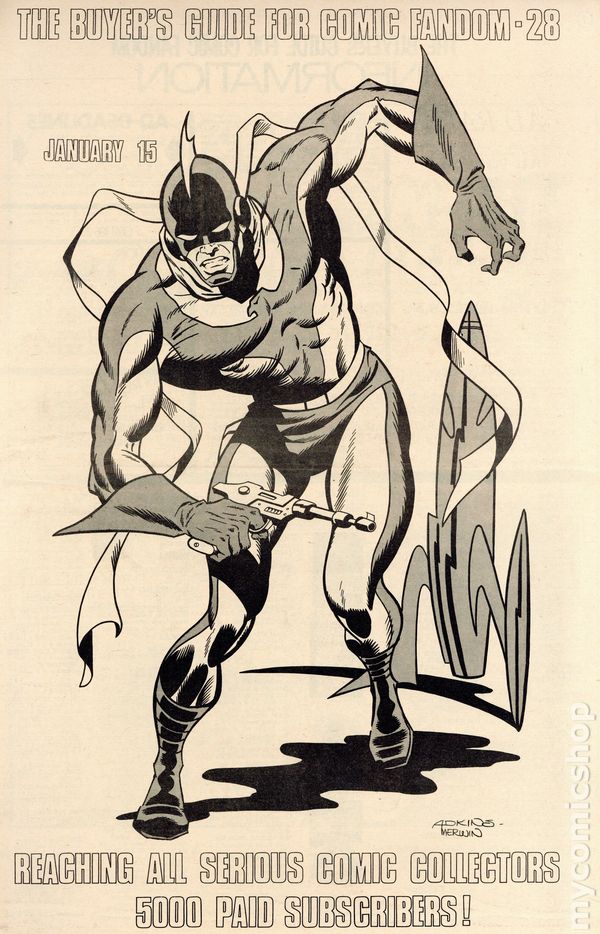 The Buyers Guide for Comic Fandom #28 - January 15, 1973. Cover artists Adkins and Merwin. 32 pages in two sections, B&W on newsprint.