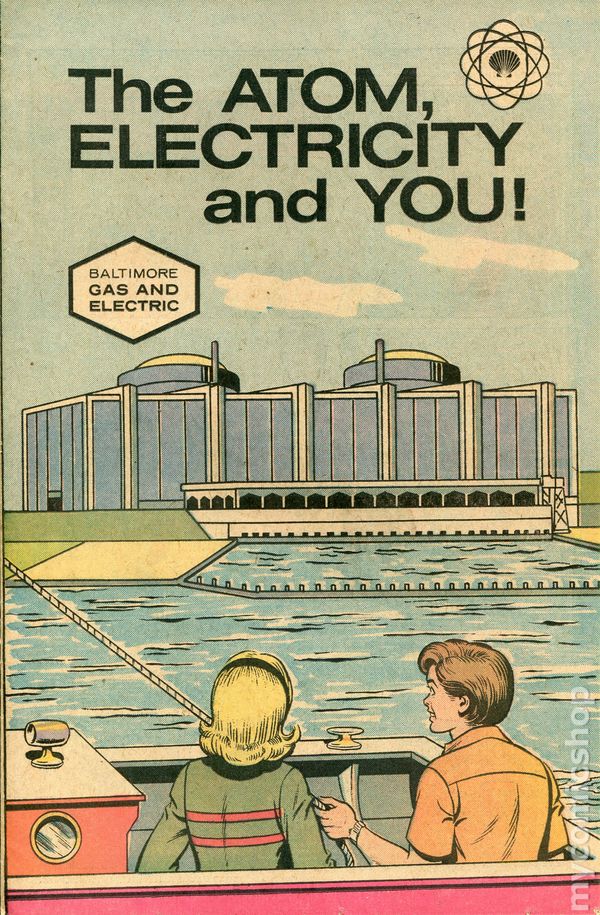 Atom, Electricity and You (1975) was published by Custom Comics and distributed by various gas and electric companies. This edition (1975BALTIMORE) was printed specifically for Baltimore Gas and Electric. 6 1/2" X 10", 16 pages, full color, standard comic book size, all newsprint, no cover price.