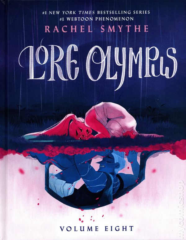 Volume 7 - 1st printing. Written by Rachel Smythe. Art and cover by Rachel Smythe and Edwin Vazquez. Translated by Anastasia. Scandalous gossip, wild parties, and forbidden love-the Greek tale of Hades and Persephone gets a romantic modern update in the gorgeously illustrated, Eisner Award-winning Lore Olympus, including a brand new bonus short story! n ingenious take on the Greek Pantheon, Lore Olympus is a modern update on the story of Hades and Persephone. Follow the propulsive love story of two Greek gods, told with lavish artwork and contemporary sensibilities. This full-color edition of Smythe's original Eisner Award-winning webcomic Lore Olympus features exclusive behind-the-scenes content and brings Greek mythology into the modern age in a sharply perceptive and romantic graphic novel. This volume collects episodes 153-179 of the #1 WEBTOON comic Lore Olympus. Hardcover, 416 pages, full color. Cover price $30.00.