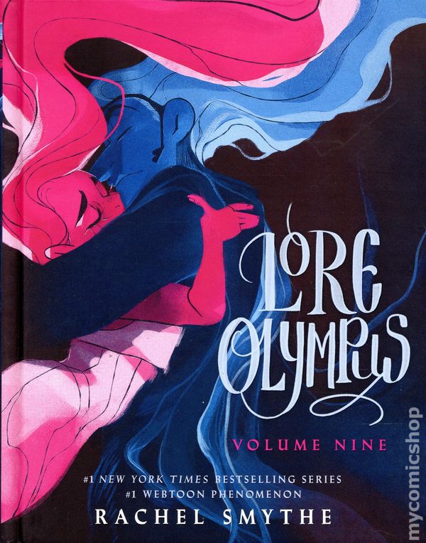 Volume 9 - 1st printing. Written by Rachel Smythe. Art and cover by Rachel Smythe and Edwin Vazquez. Translated by Anastasia. Scandalous gossip, wild parties, and forbidden love—the Greek tale of Hades and Persephone gets a romantic modern update in the gorgeously illustrated, Eisner Award-winning Lore Olympus, including a brand new bonus short story! An ingenious take on the Greek Pantheon, Lore Olympus is a modern update on the story of Hades and Persephone. Follow the propulsive love story of two Greek gods, told with lavish artwork and contemporary sensibilities. This full-color edition of Smythes original Eisner Award-winning webcomic Lore Olympus features an exclusive bonus short story and brings Greek mythology into the modern age in a sharply perceptive and romantic graphic novel. This volume collects episodes 207-233 of the #1 WEBTOON comic Lore Olympus. Hardcover, 432 pages, full color. Cover price $30.00.