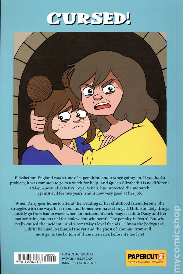 Volume 3 - 1st printing. "A Charm of Magpies!" Written by Benjamin Dickson. Art and cover by Rachael Smith. Elizabethan England was a time of superstition and strange goings on. If you had a problem, it was common to go to a witch for help. And Queen Elizabeth I is no different. Daisy, Queen Elizabeths Royal Witch, has protected the monarch against evil for two years, and is now very good at her job. When Daisy goes home to attend the wedding of her childhood friend Jerome, she struggles with the ways her friend and hometown have changed. Unfortunately things quickly go from bad to worse when an incident of dark magic leads to Daisy and her mother being put on trial for malevolent witchcraft. The penalty is death! But who really caused the incident...and why? Daisys loyal friends — Simon the bodyguard, Edith the maid, Nathaniel the rat and the ghost of Thomas Cromwell — must get to the bottom of these mysteries, before its too late! Softcover, 6-in. x 9-in., 112 pages, full color. Cover price $9.99.