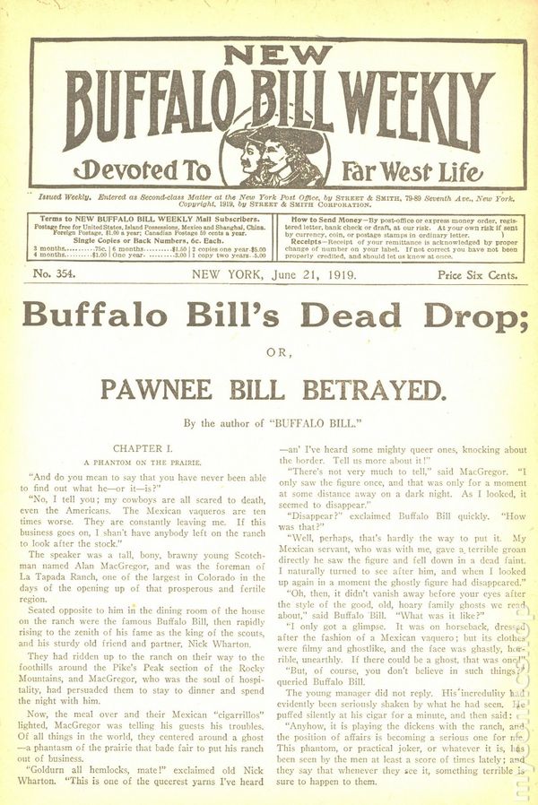No. 354 - June 21, 1919. Buffalo Bill's Dead Drop Cover price $0.06.