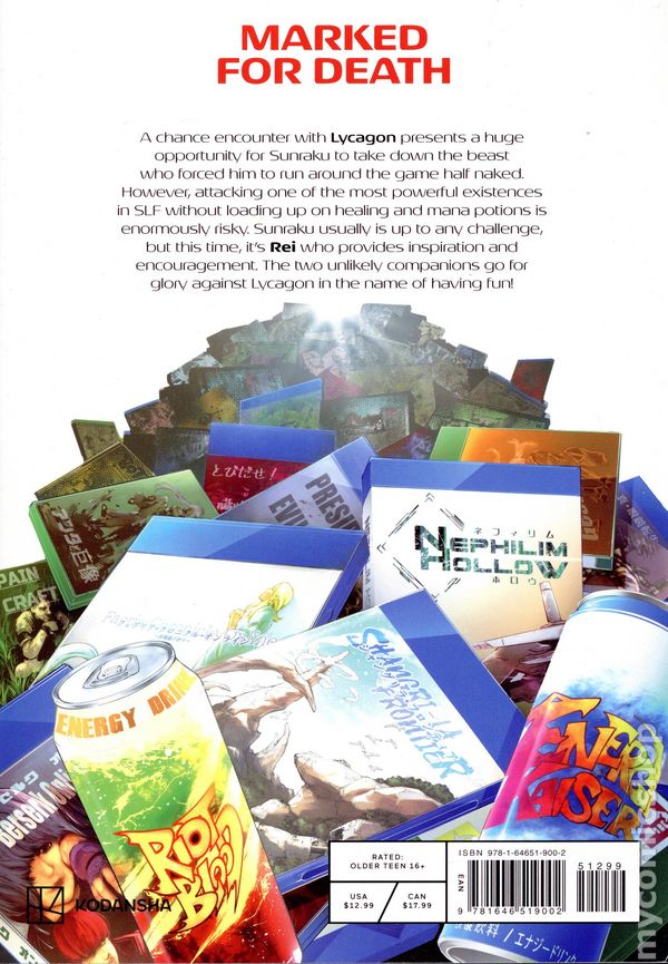 Volume 10 - 2nd and later printings. Written by Katarina. Art and cover by Ryosuke Fuji. Translated by Kevin Gifford. A chance encounter with Lycagon presents a huge opportunity for Sunraku to take down the beast who forced him to run around the game half naked. However, attacking one of the most powerful existences in SLF without loading up on healing and mana potions is enormously risky. Sunraku usually is up to any challenge, but this time, its Rei who provides inspiration and encouragement. The two unlikely companions go for glory against Lycagon in the name of having fun!! Softcover, 5-in. x 7-in., 192 pages, B&W. Older Teen (16+) Cover price $12.99.