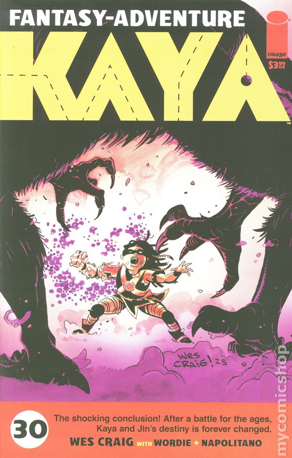 Written by Wes Craig. Art by Wes Craig. Cover by Wes Craig. END OF STORY ARC The shocking conclusion to book five! After a battle for the ages, Kaya and Jins destiny is forever changed! 24 pages, full color, rated T. Cover price $3.99.
