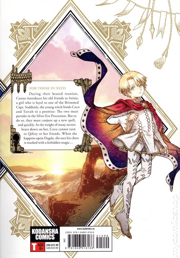 Volume 11 - 2nd and later printings. Story and art by Kamome Shirahama. Translated by Stephen Kohler. As the new trial comes to an end, one of Coco's rewards from Beldaruit the Wise is the story of Qifrey's past and how he came to desire the mysteries of magic. Feeling a connection with her own desire to save her mother, Coco departs for the source of all answers: the Tower of Tomes. But it is a perilous journey to make on her own, and the secrets held within could sway even the most virtuous of witches. Softcover, 6-in. x 8-in., 176 pages, B&W. Rated T Cover price $12.99.