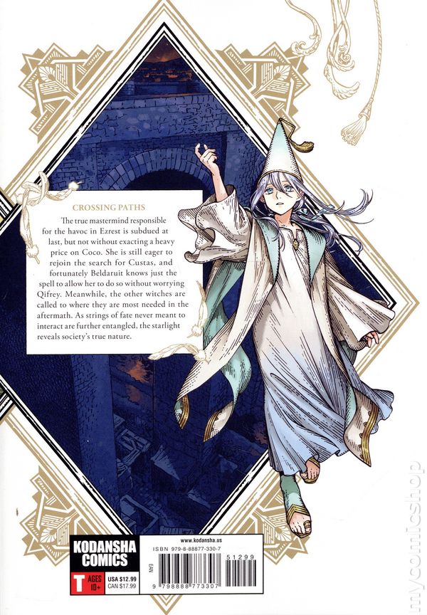 Volume 13 - 2nd and later printings. Story and art by Kamome Shirahama. Translated by Stephen Kohler. A beautifully-illustrated story about a girl who longs for magic in her life and learns that, on the inside, she already is what she wishes she could be. This lushly-drawn story has won an Eisner Award and a Harvey Award, and was voted one of the top 10 manga of the year in 2018 by the Japanese manga industry. CROSSING PATHS. The true mastermind responsible for the havoc in Ezrest is subdued at last, but not without exacting a heavy price on Coco. She is still eager to rejoin the search for Custas, and fortunately Beldaruit knows just the spell to allow her to do so without worrying Qifrey. Meanwhile, the other witches are called to where they are most needed in the aftermath. As strings of fate never meant to interact are further entangled, the starlight reveals societys true nature. Softcover, 6-in. x 8-in., 192 pages, B&W. Rated T Cover price $12.99.