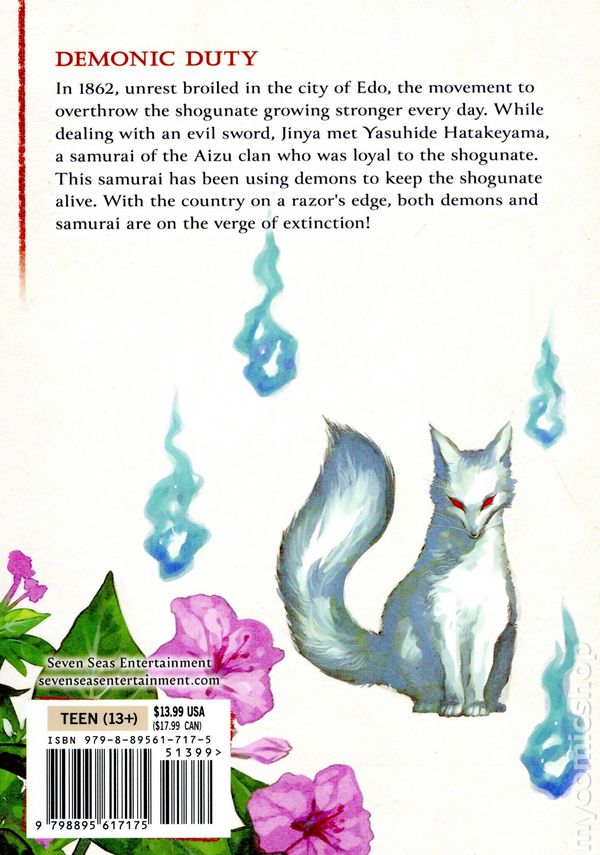 Volume 8 - 1st printing. Written by Motoo Nakanishi. Art and cover by Yu Satomi. Translated by Yui Kajita. DEMONIC DUTY. In 1862, unrest broiled in the city of Edo, the movement to overthrow the shogunate growing stronger every day. While dealing with an evil sword, Jinya met Yasuhide Hatakeyama, a samurai of the Aizu clan who was loyal to the shogunate. This samurai has been using demons to keep the shogunate alive. With the country on a razor's edge, both demons and samurai are on the verge of extinction! Softcover, 5-in.x 7-in., 168 pages, B&W. Teen (13+) Cover price $13.99.