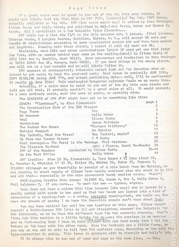 Cry of the Nameless (1950-1970 F. M. Busby/Wally Weber) Fanzine comic books 1960-1969