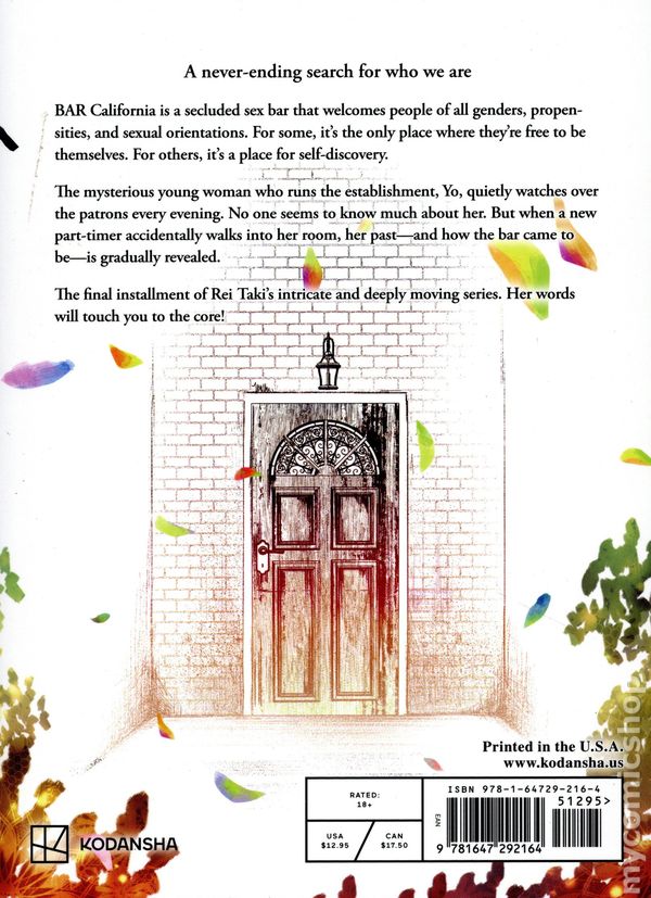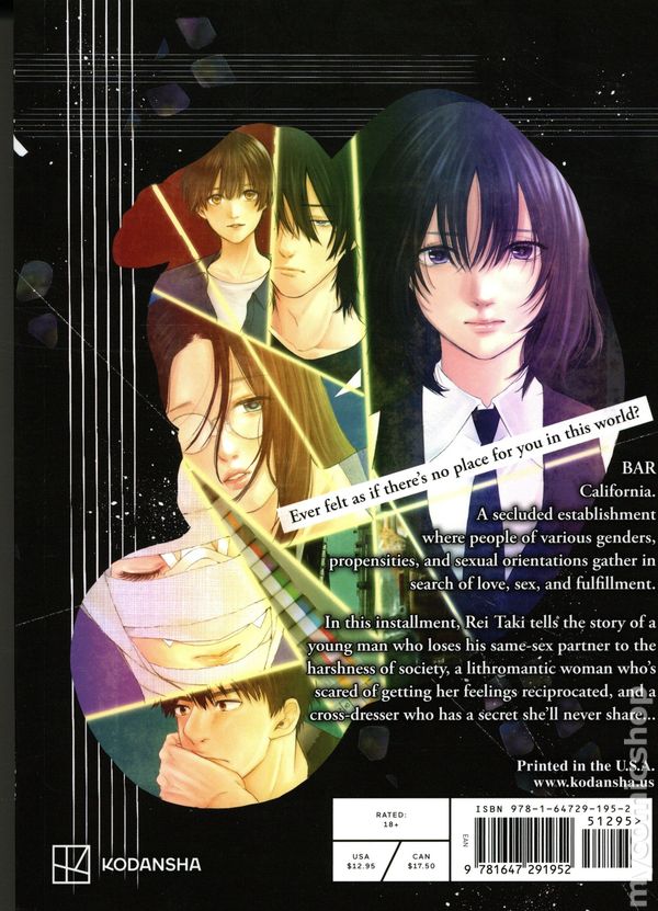 Volume 3 - 1st printing. Story and art by Rei Taki. Translated by Mishima Kitan. Welcome to "BAR California", a place where people with different genders, propensities, and sexual orientations gather to find a certain "something." A transgender bisexual who has been hurt by the voices of others, a pansexual looking for true love, and a person who identities as both male and female. There are as many sexualities as there are people. Softcover, 5-in. x 7-in., 176 pages, B&W. Mature Readers Cover price $12.95.
