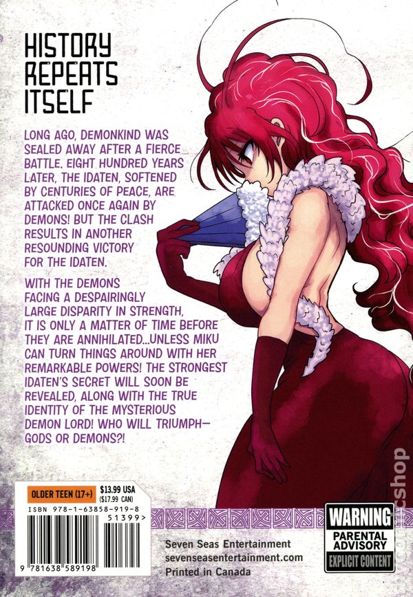 Volume 4 - 1st Printing. Written by Amahara. Art and cover by "coolyousinnjya". HISTORY REPEATS ITSELF! Long ago, demonkind was sealed away after a fierce battle. Eight hundred years later, the Idaten, softened by centuries of peace, are attacked once again by demons! But the clash results in another resounding victory for the Idaten. With the demons facing a despairingly large disparity in strength, it is only a matter of time before they are annihilated…unless Miku can turn things around with her remarkable powers! The strongest Idatens secret will soon be revealed, along with the true identity of the mysterious Demon Lord! Who will triumph—gods or demons?! Softcover, 5-in. x 7-in., 168 pages, B&W. MATURE READERS Cover price $13.99.