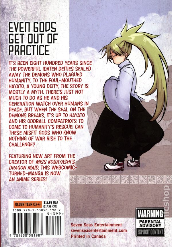 Volume 1 - 1st Printing. Written by Amahara. Art and cover by "coolyousinnjya". Its been eight hundred years since the powerful Idaten deities sealed away the demons who plagued humanity. To the foul-mouthed Hayato, a young deity, the story is mostly a myth. Theres just not much to do as he and his generation watch over humans in peace. But when the seal on the demons breaks, its up to Hayato and his oddball compatriots to come to humanitys rescue! Can these misfit gods who know nothing of war rise to the challenge? Softcover, 5-in. x 7-in., 184 pages, B&W. MATURE READERS Cover price $13.99.