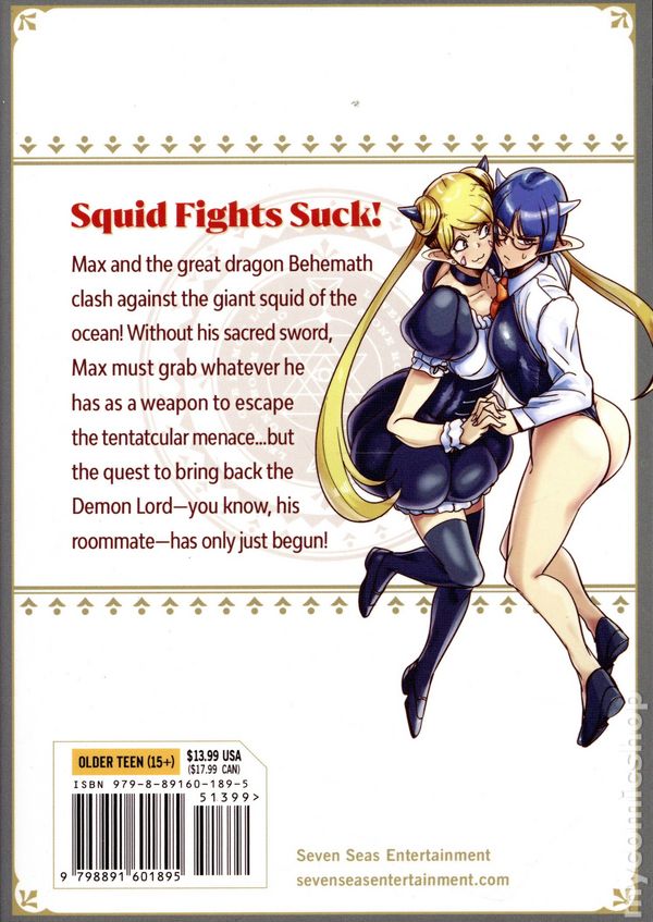 Volume 8 - 1st printing. Story and art by Toufu. Translated by M. Fulcrum. Adapted by Jeffery Thomas. SQUID FIGHTS SUCK! Max and the great dragon Behemath clash against the giant squid of the ocean! Without his sacred sword, Max must grab whatever he as a weapon to escape the tentacular menace...but the quest to bring back the Demon Lord—you know, his roommate—has only just begun! Softcover, 5-in. x 7-in., 184 pages, B&W. Age 15+ Cover price $13.99.