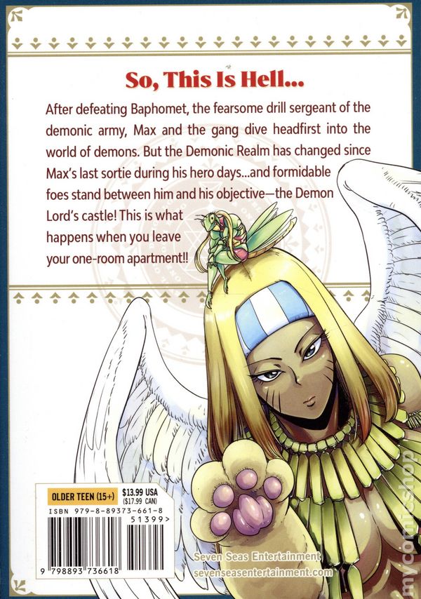 Volume 9 - 1st printing. Story and art by Toufu. Translated by M. Fulcrum. Adapted by Jeffery Thomas. SO, THIS IS HELL... After defeating Baphomet, the fearsome drill sergeant of the demonic army, Max and the gang dive head-first into the world of demons. But the Demonic Realm has changed since Maxs last sortie during his hero days, and formidable foes stand between him and his objective—the demon lord's castle! This is what happens when you leave your one-room apartment!! Softcover, 5-in. x 7-in., 168 pages, B&W. Age 15+ Cover price $13.99.