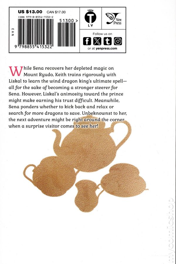 Volume 7 - 1st printing. Written by Tail Yuzuhara. Art and cover by sora. Translated by Timothy Gifford. After Sena uses up all her mana to cast a heaven magic spell that quells the civil war in the Kingdom of Ciepla, Liskal takes her to Mount Ryudo to recover. Keith, struggling to deal with his feelings of powerlessness as a steerer, insists on becoming Liskal's apprentice, much to the wind dragon king's dismay! Softcover, 5-in. x 7-in., 176 pages, B&W. Teen Cover price $13.00.