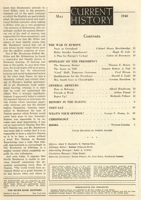 May , 1940. World affairs magazine published by the New York Times. 7" x 9.5", 66 pages, B&W. Cover price $0.25.