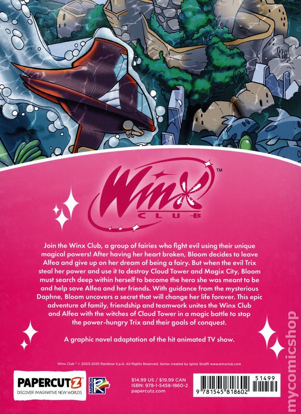Volume 4 - 1st printing. "Magic Battle!" Story and art by Rainbow S.p.A. Collecting 3 classic Winx Tales for fans of magic, fairies, adventure, heroics and relationship drama! Join the Winx Club, a group of fairies who fight evil using their unique magical powers! Tipsheet - Book Description:With the Dragon's Flame in their possession, Red Fountain destroyed, Cloud Tower under their control and the whole of Magix City completely wiped out, the Trix finally decide to take out the last surviving school with the biggest wave of their Army of Darkness yet. With no time to spare, Bloom desperately searches for ways to regain her lost powers, all with the help of Daphne, a mysterious fairy and her Pixie companions. Just when all seems lost, Bloom manages to regain her Dragon's Flame and returns to Alfea to take down the Trix and return to her life as an aspiring fairy. Softcover, 6-in. x 9-in., 144 pages, full color. Cover price $14.99.