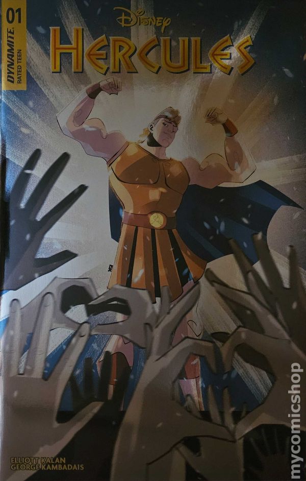 Limited 1 for 10 Retailer Incentive Variant Cover. Written by Elliott Kalan. Art and Cover by George Kambadais. THE CHAMPION OF OLYMPUS RETURNS! The world's favorite demigod-turned-mortal is back, and he's about to embark on the biggest adventure since The Odyssey! The Greek gods don't really get why Hercules chose a mortal life over the opportunity to join them on Mt. Olympus, but since he proved his mettle as a hero many times over, they're happy to enlist his help with missions that require interventions in the earthly realm. So when Aphrodite grants an artist's wish that his sculpture be brought to life, Herc gets the call to clean things up when the newly conscious artwork proves to be more bone-crushingly lively than expected! But after discovering that the rogue statue is just misunderstood, and a little rambunctious (much like himself as a youth), Hercules returns to explain the situation to Aphrodite - only to find her temple empty and abandoned. Is the goddess of love just pouting, or is something more sinister afoot? If you know anything about classic mythology, you know it's going to be the latter! 32 pages, full color. Rated T Cover price $4.99.