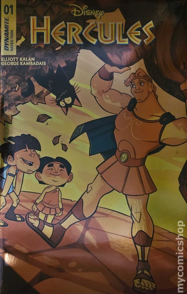 Limited 1 for 15 Retailer Incentive Variant Foil Cover. Written by Elliott Kalan. Art and Cover by George Kambadais. After the unexplained disappearance of both Aphrodite and Hephaestus, the remaining gods of Olympus convene an emergency council to tackle the problem. Rejecting Hercules's outlandish idea that Hades might have returned, they dismis- sively send the demigod on another divine errand this time to the city of Thessaly, which is under attack from an army of centaurs. As Hercules and Galatea take on the hooved besiegers, Meg and Phil search for the source of their hostility- only to find that their main suspect has become the latest victim of the ongoing rash of supernatural vanishings! 32 pages, full color. Rated T Cover price $9.99.
