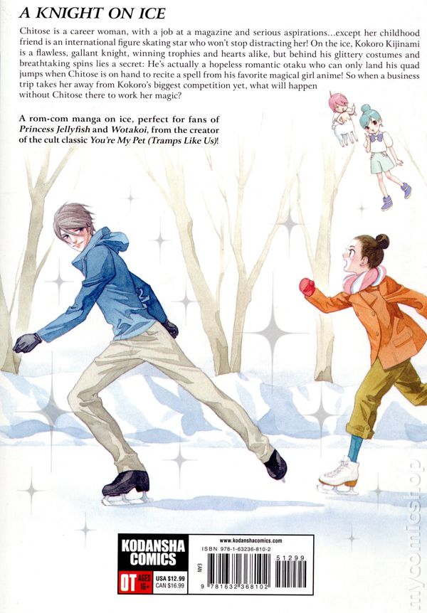 Volume 1 - 1st Printing. Story, art, and cover by Yayoi Ogawa. A rom-com manga on ice, perfect for fans of Princess Jellyfish and Wotakoi. Kokoro is the talk of the figure-skating world, winning trophies and hearts. But little do they know… hes actually a huge nerd! From the beloved creator of Youre My Pet (Tramps Like Us). Chitose is a serious young woman, working for the health magazine SASSO. Or at least, she would be, if she wasnt constantly getting distracted by her childhood friend, international figure skating star Kokoro Kijinami! In the public eye and on the ice, Kokoro is a gallant, flawless knight, but behind his glittery costumes and breathtaking spins lies a secret: hes actually a hopeless romantic otaku, who can only land his quad jumps when Chitose is on hand to recite a spell from his favorite magical girl anime! Softcover, 5 1/2-in., x 8-in., 192 pages, B&W. Cover price $12.99.