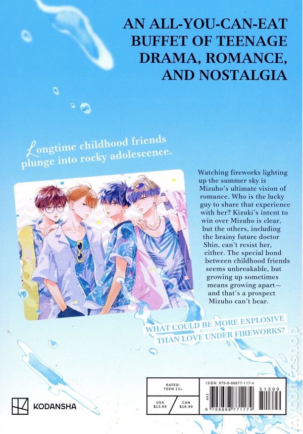 Volume 3 - 1st printing. Story and art by Haruka Mitsui. Translated by Melissa Chiam/amimaru. An irresistible shojo manga offering an all-you-can-eat-buffet of high school drama, adolescent crushes, and childhood nostalgia. Guaranteed to delight fans of popular romance comics like Komi Cant Communicate and Skip and Loafer. Watching fireworks lighting up the summer sky is Mizuhos ultimate vision of romance. Who is the lucky guy to share that experience with her? Kizukis intent to win over Mizuho is clear, but the others, including the brainy future doctor Shin, cant resist her, either. The special bond between childhood friends seems unbreakable, but growing up sometimes means growing apart—and thats a prospect Mizuho cant bear. What could be more explosive than love under fireworks? Softcover, 5-in. x 7-in., 160 pages, B&W. Cover price $13.99.