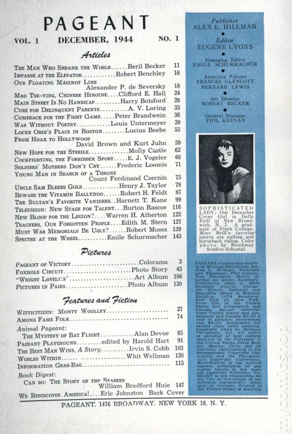 Pageant (1944-1977 Hillman Periodicals) Vol. 1 #1Published Dec 1944 by Hillman Periodicals.$5.50