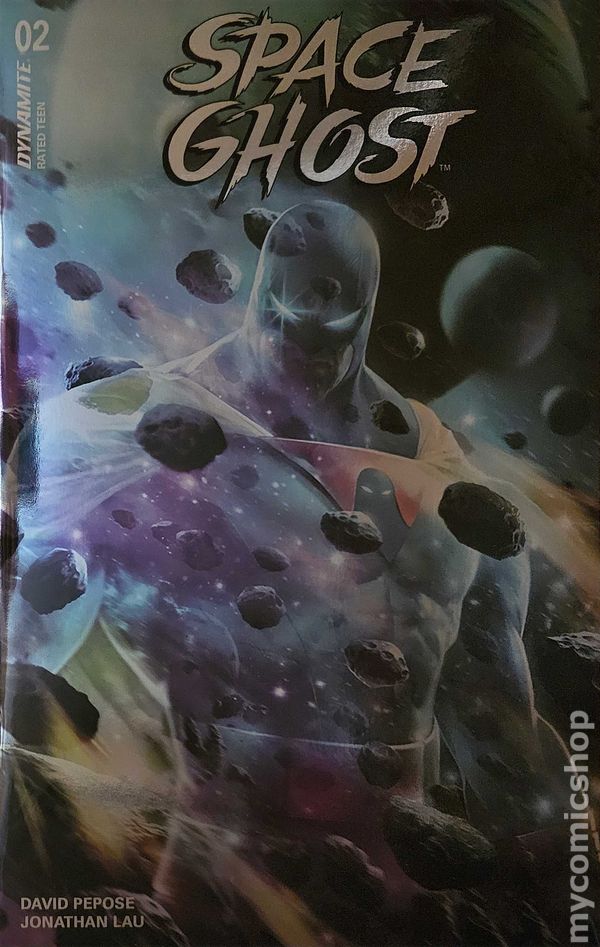 View scansFoil Cover. Written by David Pepose. Art by Jonathan Lau. Cover by Francesco Mattina. ...They call it the Ghost Planet now.' Jan, Jace, Blip and Space Ghost travel to the Ghost Planet, the mysterious headquarters of the even more mysterious Space Ghost. Leaving on an urgent mission, Space Ghost give explicit orders to: STAY. PUT. What could go wrong? Also featuring an unexpected flight of the Phantom Cruiser! Over the next year, everything you know about Space Ghost, his companions and his enemies will be revealed as only Dynamite can! Written by David (Punisher) Pepose and drawn by Dynamite superstar Jonathan Lau, issue #1 features an array of the most incredible artists in the known Galaxy: Bjorn Barends, Francesco Mattina, Jae Lee and Michael Cho! ALL COVERS CARDSTOCK 32 pages, full color. Rated T Cover price $4.99.
