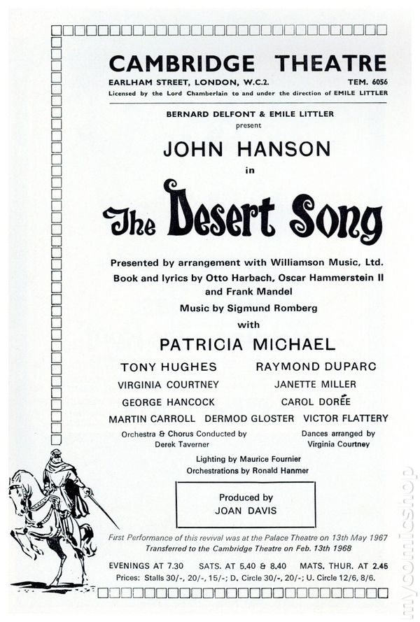 Desert Song Programme (1968 Cambridge Theatre) comic books 1956-1969