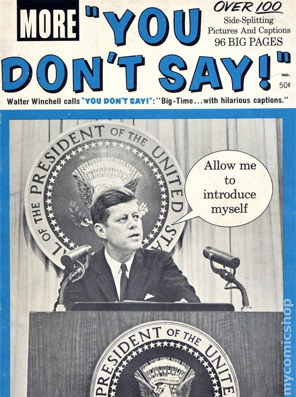 Written by Stan Lee. Second collection of photos of famous people augmented with humorous captions. Pulled from the market after the assassination. Squarebound, 8.5" x 11", 100 pages, B&W. Cover price $0.50.