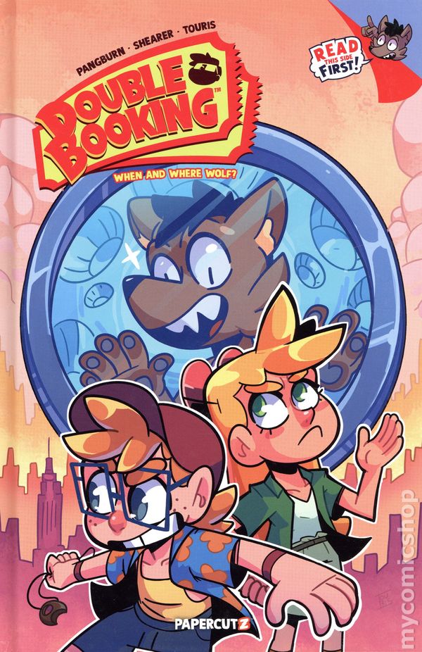 Volume 2 - 1st printing. "When and Where Wolf!" Written by Chas! Pangburn and Kim Shearer. Art and cover by Nicolas Touris. SPOOKY ADVENTURES AHOY! While on a cruise trip with their father, two siblings, Otto and Nan, learn of a furry menace wreaking havoc for passengers: a real-life werewolf! The resulting "weredunit" adventure has them questioning family, fellow travelers, and even themselves as they battle the ocean's waves and the full moon. Canine capers are nothing to bark at...especially for two growing kids! See both perspectives in this flip graphic novel, written by real-life siblings Chas! Pangburn and Kim Shearer. TWO stories, TWO unique perspectives, and TWO different art styles--all in ONE book! However, in order to get the full tail/tale, readers have to read BOTH sides of the story. Humor, action, the supernatural, emotional beats, and educational components—it's an adventure for all! Hardcover, 6-in. x 9-in., 144 pages, full color. All Ages Cover price $17.99.