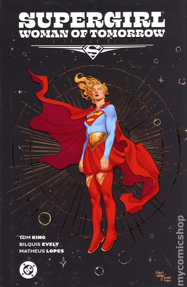 2nd and later printings. Collects Supergirl: Woman of Tomorrow (2021 DC ) #1-8. Written by Tom King. Art and cover by Bilquis Evely and Matheus Lopes. Her planet was destroyed. Sent to Earth to protect a baby cousin who never needed saving. Forever living in his shadow. The Supergirl to his Superman. But when Kara is sought out by an alien seeking revenge on those who destroyed her world, everything changes. She will need to embark on a mission across space to find herself, defy her pasts, and face her future. From Tom King and Bilquis Evely comes a character-defining cosmic masterpiece for the ages. Supergirl: Woman of Tomorrow The Deluxe Edition collects the complete saga (issues #1-8) and features a brand-new introduction by Tom King, a brand-new cover by Bilquis Evely, the never-before-published alternate script for issue #6, and a treasure trove of behind-the-scenes artwork from Evely. Hardcover, 264 pages, full color. Cover price $49.99.