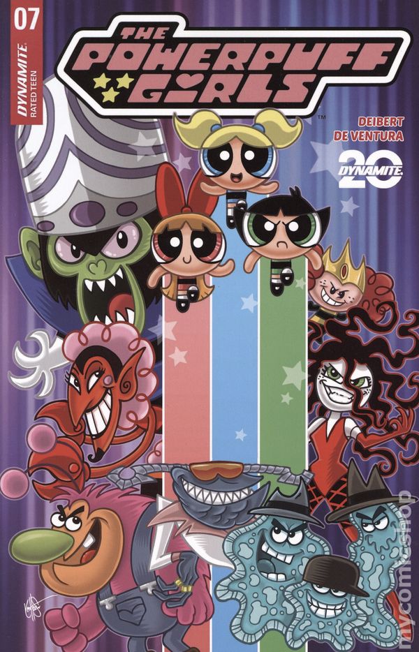 Limited 1 for 20 Retailer Incentive Variant Cover. Written by Amanda Diebert. Art by Silvia De Ventura. Cover by Alessandro Ranaldi. Everyone knows that the Powerpuff Girls are the best super-powered defenders a city could ever dream of - but that doesn't mean there isn't any room for improvement! And at the end of a busy year of thwarting monsters and malefactors, what better way to try and do better than to come up with some really solid New Year's resolutions? For Bubbles, Blossom, and Buttercup, though, the trick is finding a quiet moment to think about what resolutions they ought to make - something that's easier said than done when a never-ending stream of villains keep attacking the town and breaking their concentration! Acclaimed author AMANDA DEIBERT kicks off her tenure in Townsville with The Powerpuff Girls #7, featuring irresistible interiors by SILVIA DE VENTURA and captivating covers by PAULINA GANUCHEAU, ALESSANDRO RANALDI, CAT STAGGS, and PASQUALE QUALANO! 32 pages, full color. Rated T Cover price $4.99.