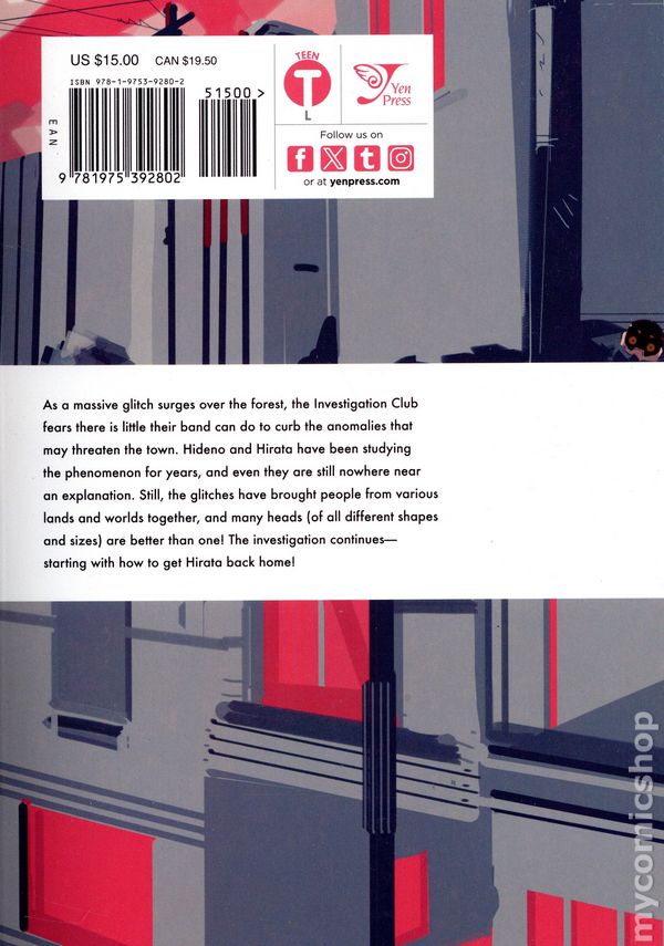 Volume 4 - 1st printing. Story and art by Shima Shinya. The mystery behind the glitches is finally unraveling, and at the heart of it all is the forest. Can the Investigation Club protect the people of Touka-cho now that the glitches are wreaking havoc all over the town...? And what is the relationship between Hideno, Kei, and Gabriel...? The children's mysterious summer adventure comes to an end in this final installment! Softcover, 5-in. x 8-in., 192 pages, B&W. Mature Readers Cover price $15.00.