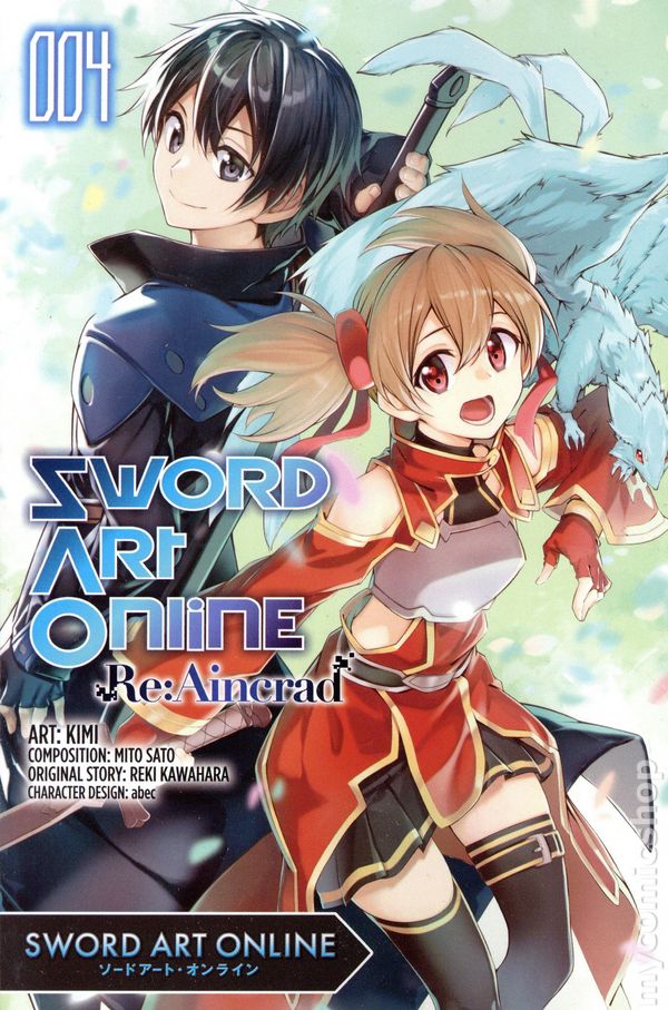 Volume 4 - 1st printing. Original Story by Reki Kawahara. Art and cover by Kimi. Composition by Mito Sato. Translated by Stephen Paul. After a player dies in a what was supposed to be an area inaccessible to monsters, Kirito and Asuna immediately head over to investigate. Could a fellow player be behind this incident...? Softcover, 5-in. x 7-in., 178 pages, B&W. Teen Cover price $13.00.