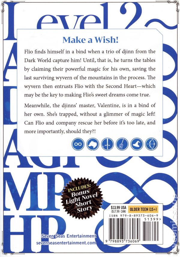 Volume 11 - 1st printing. Written by Miya Kinojo. Art and cover by Akine Itomachi. Character Design by Katagiri. Translated by John Neal. Adapted by Topher Pirki. MAKE A WISH! Flio finds himself in a bind when a trio of djinn from the Dark World capture him! Until, that is, he turns the tables by claiming their powerful magic for his own, saving the last surviving wyvern of the mountains in the process. The wyvern then entrusts Flio with the Second Heart—which may be the key to making Flios sweet dreams come true. Meanwhile, the djinns master. Valentine, is in a bind of her own. Shes trapped, without a glimmer of magic left! Can Flio and company rescue her before it's too late, and more importantly, should they?! Softcover, 5-in. x 7-in., 170 pages, B&W. Older Teen (15+) Cover price $12.99.