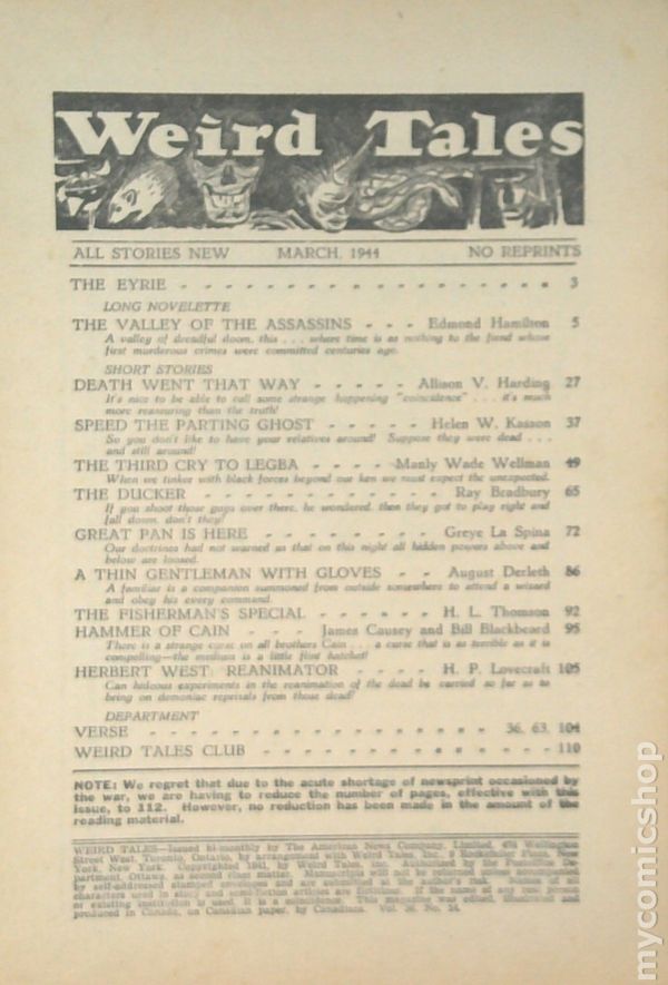 Weird Tales (Canadian 1923 American News Company) Pulp comic books 1944