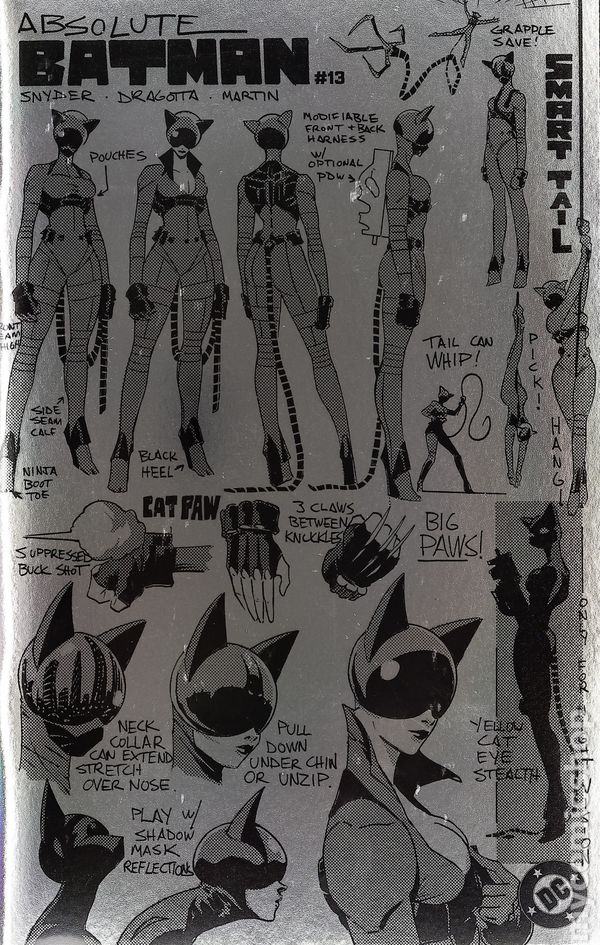 Foil Cover. Written by Scott Snyder. Art by Nick Dragotta. Cover by Stanley Artgerm Lau. ABSOLUTE CATWOMAN DEBUTS! Batmans final showdown with the monstrous Bane! Will he be able to overcome this unstoppable behemoth, or will he be trapped in Ark-M forever?! 24 pages, full color, rated 15+. Cover price $7.99.