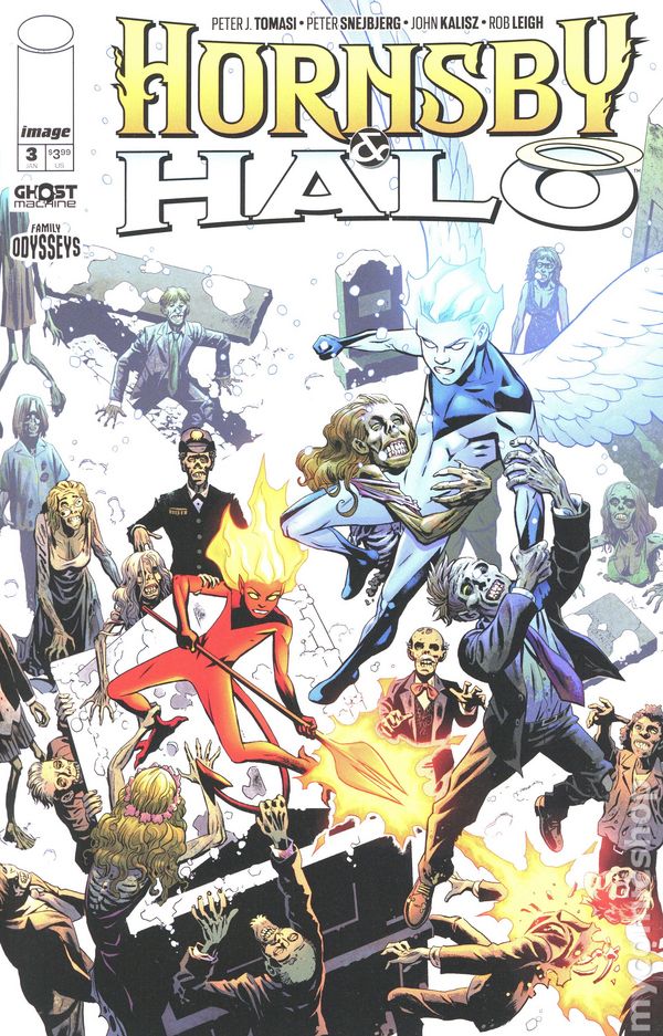 Written by Peter J. Tomasi. Art by Peter Snejbjerg, John Kalisz. Cover by Christian Alamy, John Kalisz. A blizzard hits the town of Warwick…but it's hardly a natural occurrence, as rogue agents of Heaven and Hell try to disrupt the tenuous peace between realms, using Rose Hornsby and Zack Halo as pawns. The storm's 'ethereal' qualities raise the dead from their graves to reclaim their personal valuables stolen by the Halo family before being buried. And Zach and Rose discover the hard way that 'finders keepers' won't deter angry zombies! 32 pages, full color. Rated T Cover price $3.99.