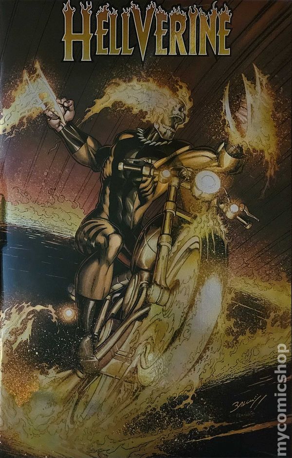 Foil cover. Written by Benjamin Percy. Art by Raffaele Ienco. Cover by Mark Bagley. HELLVERINE RIDES AGAIN IN HIS FIRST ONGOING SERIES! It's hellfire-fueled, claw-slashing action in the Mighty Marvel Manner as HELLVERINE blazes a new path across the Marvel Universe! The demon BAGRA-GHUL possessed WOLVERINE, turning him into a killing machine…but LOGAN is no stranger to caging the beast within his soul, and the demon learned his heroic ways. Now it's resurrected AKIHIRO, and the two must learn to live as one - the HELLVERINE! But they can't do it alone - Enter: DOCTOR STRANGE! 32 pages, full color. Rated Parental Advisory Cover price $9.99.