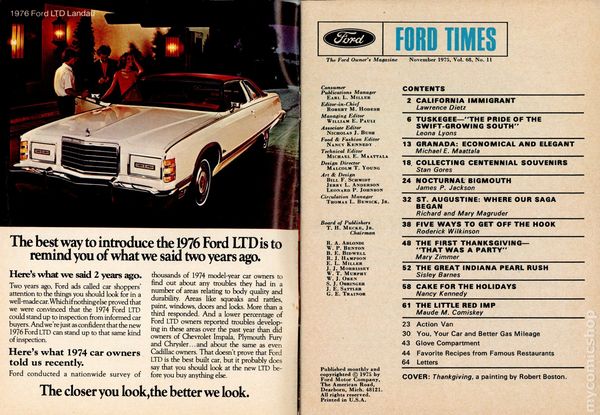 Vol. 68, No. 11 - November 1975. Promotional magazine from the Ford Motor Company. 5" x 7", 68 pages, B&W