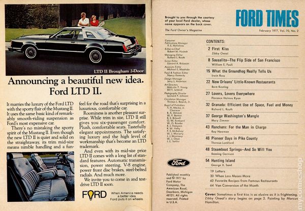 Vol. 70, No. 2 - February 1977. Promotional magazine from the Ford Motor Company. 5" x 7", 68 pages, B&W
