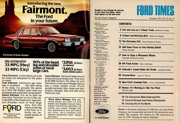 Vol. 70, No. 12 - December 1977. Promotional magazine from the Ford Motor Company. 5" x 7", 68 pages, B&W