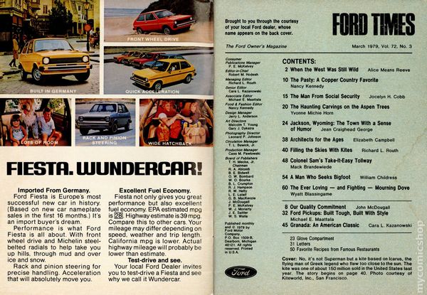 Vol. 72, No. 3 - March 1979. Promotional magazine from the Ford Motor Company. 5" x 7", 68 pages, B&W