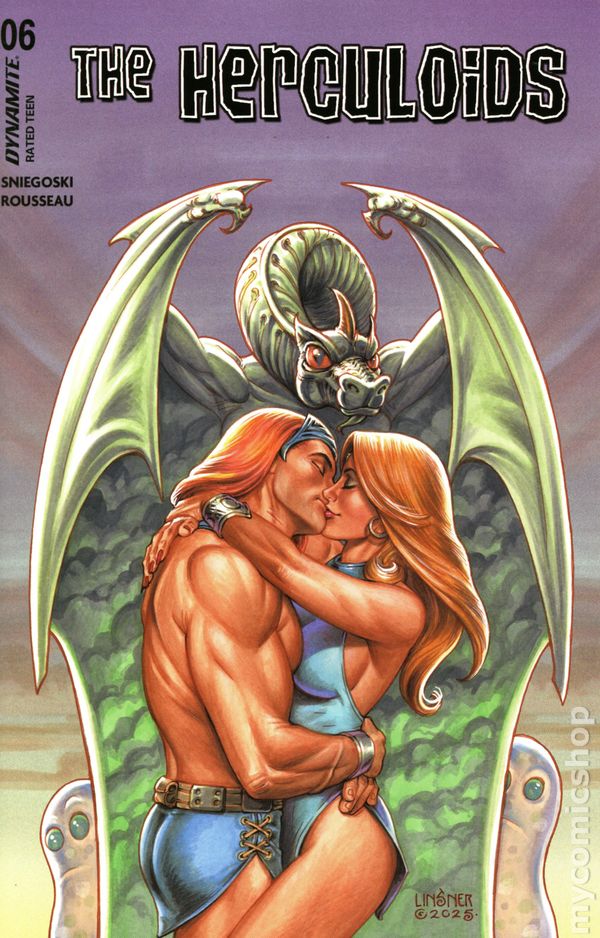 Limited 1 for 10 Retailer Incentive Variant Cover. Written by Tom Sniegoski. Art by Craig Rousseau. Cover by Joseph Michael Linsner. SPOTLIGHT ON IGOO! As a fighting force, the Hercuoids are second to none in their strength and dedication to defending their home. But as individuals, each one has a uniquely fascinating tale to tell of how they came to become one of Planet Amzot's legendary champions. In this issue: Discover the story behind one of the team's most loyal and powerful members - Igoo, the Rock Ape! Dedicated documentarians TOM SNIEGOSKI and CRAIG ROUSSEAU unveil a new chapter in Amzot's bestiary with The Herculoids #6 - expertly embellished by captivating covers from FRANCESCO MATTINA, JOSEPH MICHAEL LINSNER, BJORN BARENDS, and KYLE HOTZ! 32 pages, full color. Rated T Cover price $4.99.