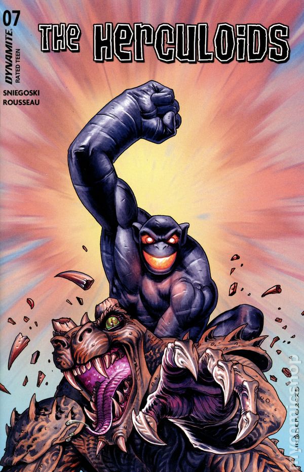 Written by Tom Sniegoski. Art by Craig Rousseau. Cover by Kyle Hotz. SPOTLIGHT ON IGOO! As a fighting force, the Hercuoids are second to none in their strength and dedication to defending their home. But as individuals, each one has a uniquely fascinating tale to tell of how they came to become one of Planet Amzot's legendary champions. In this issue: Discover the story behind one of the team's most loyal and powerful members - Igoo, the Rock Ape! Dedicated documentarians TOM SNIEGOSKI and CRAIG ROUSSEAU unveil a new chapter in Amzot's bestiary with The Herculoids #6 - expertly embellished by captivating covers from FRANCESCO MATTINA, JOSEPH MICHAEL LINSNER, BJORN BARENDS, and KYLE HOTZ! 32 pages, full color. Rated T Cover price $4.99.