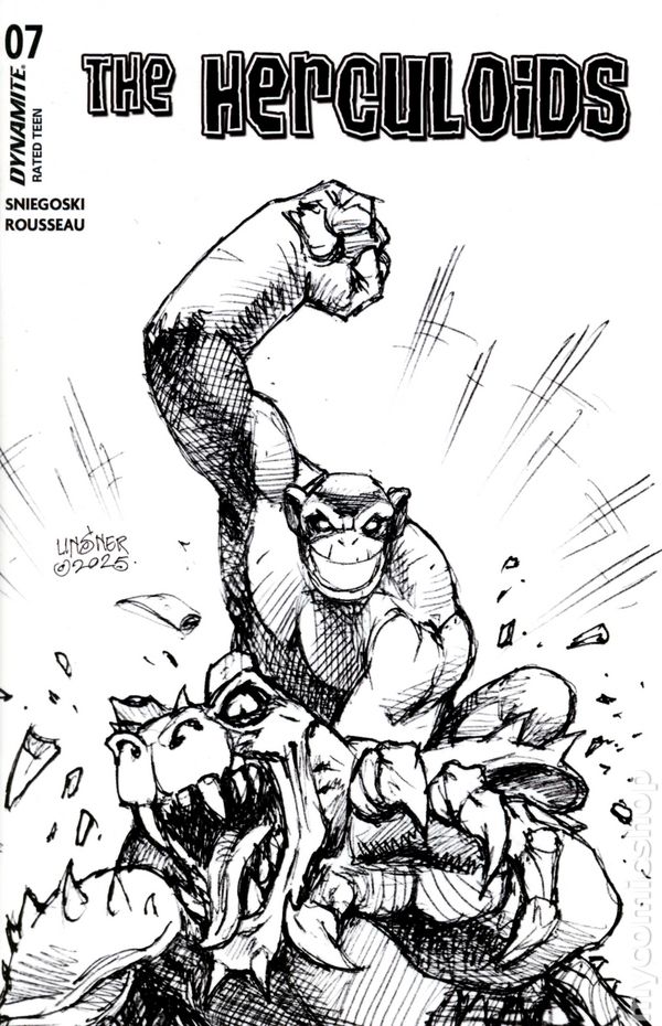 Limited 1 for 15 Retailer Incentive Variant Cover. Written by Tom Sniegoski. Art by Craig Rousseau. Cover by Joseph Michael Linsner. SPOTLIGHT ON IGOO! As a fighting force, the Hercuoids are second to none in their strength and dedication to defending their home. But as individuals, each one has a uniquely fascinating tale to tell of how they came to become one of Planet Amzot's legendary champions. In this issue: Discover the story behind one of the team's most loyal and powerful members - Igoo, the Rock Ape! Dedicated documentarians TOM SNIEGOSKI and CRAIG ROUSSEAU unveil a new chapter in Amzot's bestiary with The Herculoids #6 - expertly embellished by captivating covers from FRANCESCO MATTINA, JOSEPH MICHAEL LINSNER, BJORN BARENDS, and KYLE HOTZ! 32 pages, full color. Rated T Cover price $4.99.