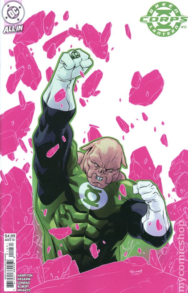 Written by Jeremy Adams, Morgan Hampton. Art by Fernando Pasarin, Oclair Albert. Cover by Fernando Pasarin, Oclair Albert. THE GREEN LANTERN CORPS RETURNS WITH A BRAND NEW ONGOING SERIES! The corps is back! And just in time for the deadly new fractured spectrum saga to kick into full gear! Join the newly formed Green Lantern Corps as they head out into the galaxy in order to stop Sorrow and his master from creating a power battery. John Stewart, Kyle Rayner, Jessica Cruz, Guy Gardner, Jo Mullein, and all your favorite Lanterns are back in the most incredible ensemble cast this side of the cosmos! All brought to you by the great galactic creative team of Jeremy Adams (Green Lantern), Morgan Hampton (Cyborg) and Fernando Pasarin (The Flash)! 28 pages, full color. Rated T+ Cover price $3.99.