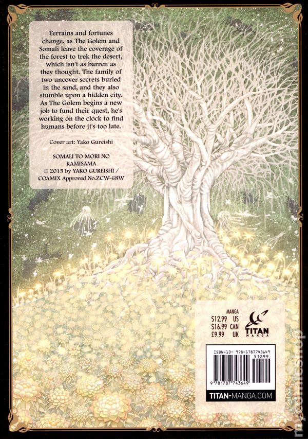 Volume 3 - 1st printing. Story and art by Yako Gureishi. Translated by Mellow Brown. Top 10 Must Read Manga of 2024 Publishers Weekly THE WORLD IS RULED BY GOBLINS, SPIRITS, GOLEMS, AND ALL TYPES OF STRANGE CREATURES... BUT NOT HUMANS. The origins of Somali are revealed! A fateful encounter deep within a forest between a Golem and a little girl would change the course of the world as they know it. Softcover, 5-in. x 7-in., 176 pages, B&W. Teen+ Cover price $12.99.