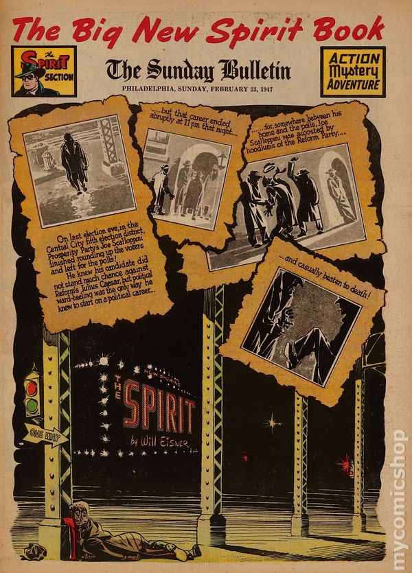 February 16, 1947. Spirit Weekly Newspaper section. Scripts, pencils/inks by Eisner except where noted. Tabloid Sized Newsprint, 10-3/4" x 15", 8 pages, full color.